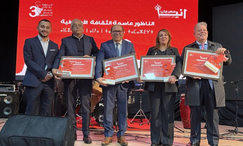 تنزيلاً للتوجيهات الملكية السامية لصاحب الجلالة الملك محمد السادس نصره الله، الداعية إلى صون وتثمين الموروث الثقافي الأمازيغي وترسيخ مكانته كرافد أساسي من روافد الهوية المغربية المتعددة، احتضنت قاعة العروض بالمركب الثقافي بمدينة الناظور، مساء الأحد 11 يناير 2026، حفل افتتاح الدورة الثالثة لمهرجان أنيا للثقافة الأمازيغية، المنظم خلال الفترة الممتدة من 11 إلى 14 يناير، تحت شعار “الناظور عاصمة الثقافة الأمازيغية”.